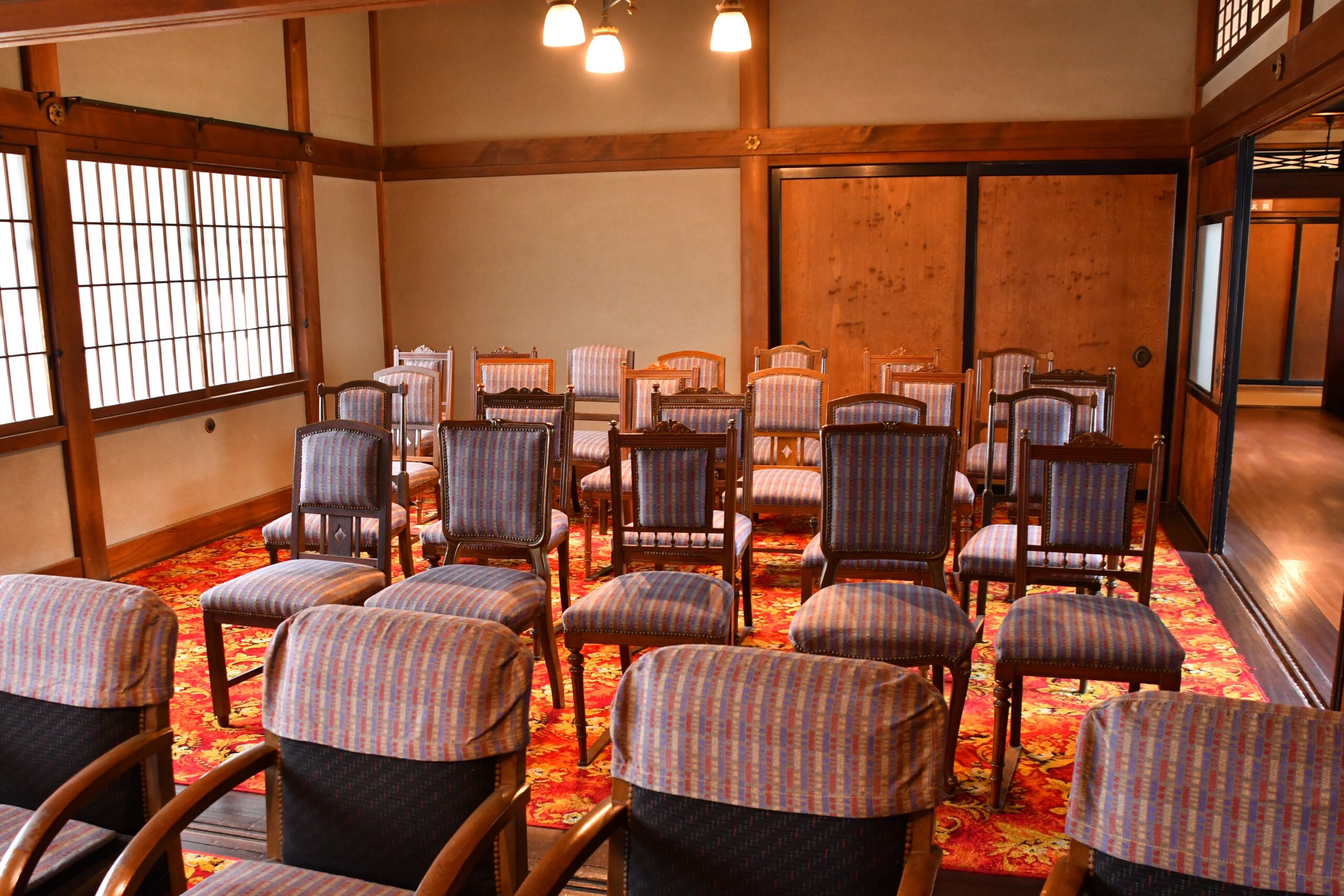 旧毛利家本邸・毛利氏庭園会場利用について 留意点 建物は重要文化財指定、庭園は名勝指定です。ご利用にあたっては次の点にご留意ください。 ①毛利博物館・旧毛利家本邸・毛利氏庭園の開館日は、一般の方が見学されるコースとなっています。 ②営利目的や物販等を行う利用はできません。 ③館内で飲食を伴う利用はできません。 利用規約 ご利用までの流れ ①空き状況のご確認 お電話でお問い合わせください。(0835-22-0001) 施設の空き状況をご案内いたします。利用月の3か月前から予約をお受けします。 (ただし、年末年始 12/22~1/3及び当財団が実施するイベント開催日は原則として利用できません。) ②予約の受付 ご利用が可能であれば、電話にて予約をお受けします。 「受付時間は、午前9時から午後5時まで」となっています。 ③本申し込み ご利用が確定しましたら、利用日の10日前までにホームページの「利用申込書」に必要事項を記入の上 メールを送信していただくか、プリントアウトしたものを郵送又は当財団の受付窓口で「本申し込み」を してください。 利用申込書 ④利用料の納付 利用料は、「本申し込み」の完了の時又は利用日の10日前までに当財団の受付窓口でお支払いください。 (利用日前の来館が困難な場合はご相談ください。) ※「本申し込み」後のキャンセルによる返金は原則応じられませんが、利用日の14日前までに お申し出があれば利用日の変更は可能です。 ⑤お申込み・お問い合わせ窓口 公益財団法人 毛利報公会TEL:0835-22-0001FAX:0835-24-2039E-mall:mouri-h@c-able.ne.jp 邸宅マップ ②応接間1 ②応接間2(2間で18畳) ④大広間(36畳) ③2階大広間(30畳) ⑨食事の間(30畳) 奥内客室(16畳) 芝生広場(約1万㎡) 前庭広場(約5千㎡) 料金表 部屋名等 一日利用 半日利用 備品類 ② 応接間(18畳) 10,000円 5,000円 机 8脚椅子 23脚 ④ 大広間(36畳) 15,000円 10,000円 椅子(低)17脚 ③ 2階大広間(30畳) 12,000円 8,000円 ⑨ 食事の間(30畳) 8,000円 5,000円 机 7脚椅子 10脚 奥内容室(16畳) 4,000円 2,000円 芝生広場(約1万㎡) 10,000円 5,000円 前庭広場(約5千㎡) 5,000円 3,000円 ※料金はすべて税込です。 ※この料金には毛利博物館への入館料及び毛利氏庭園への入園料は含まれておりません。別途、券売所で購入下さい。
